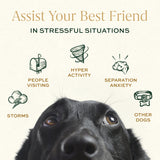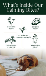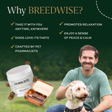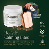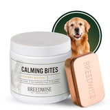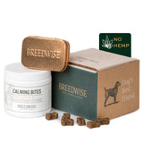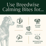 12 Jars of Breedwise’s Dog Calming Bites. Calming Bites are our solution to dog anxiety in hyperactive pups. FDA-approved active ingredient, L-Theanine (Suntheanine®), reduces dog anxiety and gives hyperactive pets a peace of mind—without the drowsiness. These natural, homeopathic dog treats offer a non-CBD solution for promoting overall gut health and avoiding common stressors, like fireworks, thunder and separation anxiety.